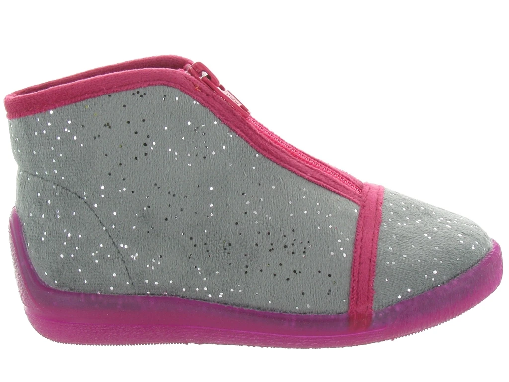 Le modèle de chausson Bellamy pour fille BAMBOU est un indispensable pour la rentrée car il a plein d’avantages : tout d’abord l’esthétique , le velours gris pailletté gansé de rose au bord est vraiment très harmonieux et se mariera avec toutes les tenues ou les pyjamas de votre princesse. Puis au niveau technique, ce chausson fait office de chaussure et aidera vraiment votre petite fille à stabiliser sa marche et son équilibre gràce au contrefort du talon et à la voute plantaire. Et niveau pratique, le zip central est idéal, surtout pour les pieds fins.
