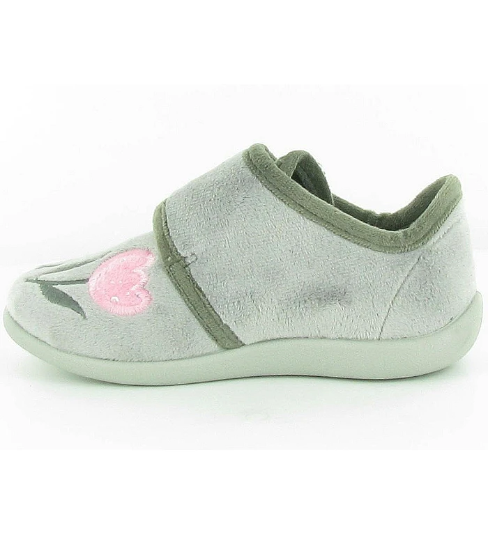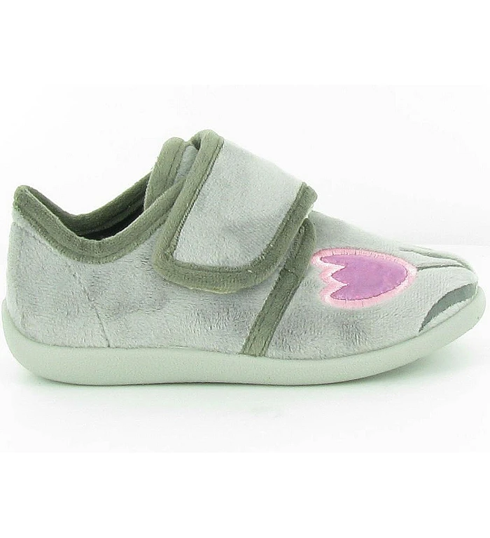 Pantoufle à fermeture velcro MAEL pour cadets de chez BELLAMY en synthétique gris et doublure textile.