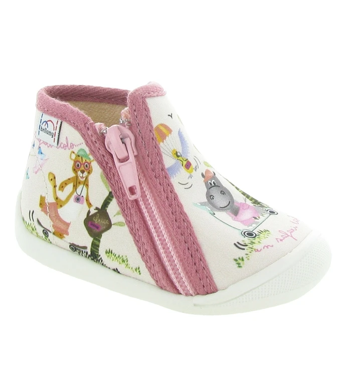 Confortable, léger et sympa comme tout, votre enfant va aimer les motifs SAVANE de cette pantoufle NATHALIE de BELLAMY. D’adorables dessins d’animaux d’Afrique etl l’inscription en rose « Un safari écolo. « rendent ce chausson rigolo.