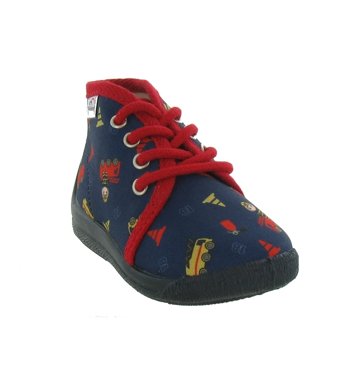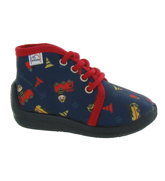 Chausson Bellamy montant à lacets garçon NOAN de fabrication française. Les petits bouts vont l’adorer avec l’imprimé de camions de pompiers. Sa fermeture par laçage vous permettra de l’adapter parfaitement au pied de votre enfant. Même pour les pieds très fins. Le confort et le maintien du pied sont assurés grâce au contrefort arrière, à la semelle cuir et à la voute plantaire.