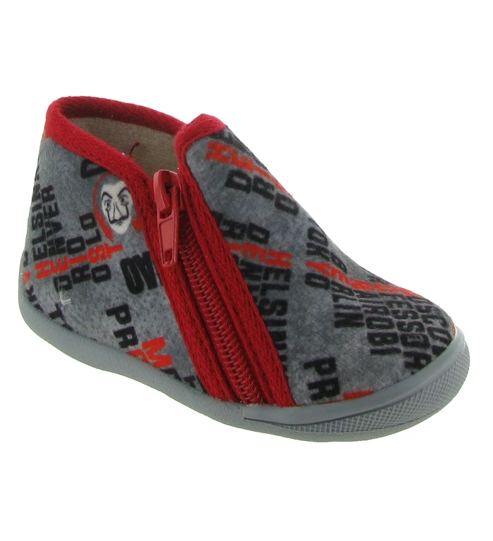 La casa de papel s’invite sur les chaussons de votre petit garçon ! Nous vous présentons le modèle TALENT. Découvrez sur ce dernier les noms des célèbres personnages de la série avec bien évidemment le masque de Dali.