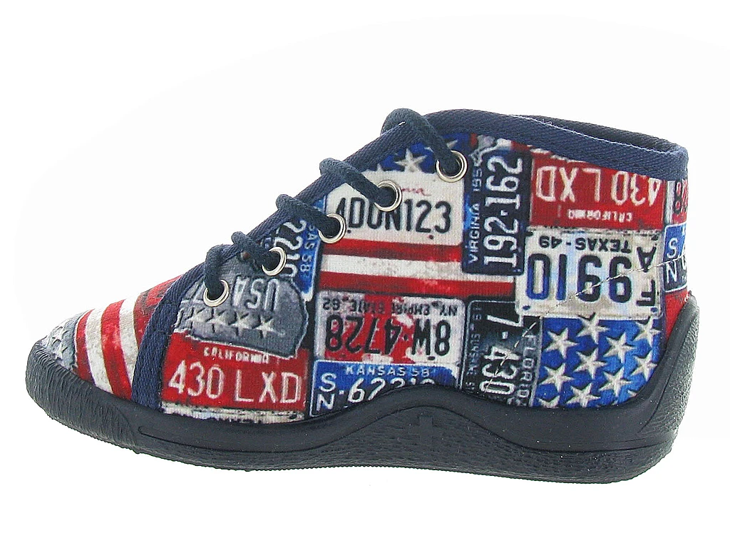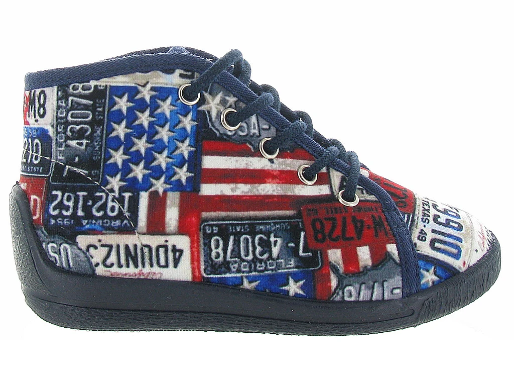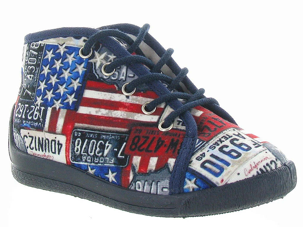 Les parents choisiront ce modèle de chaussons TAP en tissu imprimé USA, pour les lacets qui assurent un bon maintien des petites chevilles de bébé.