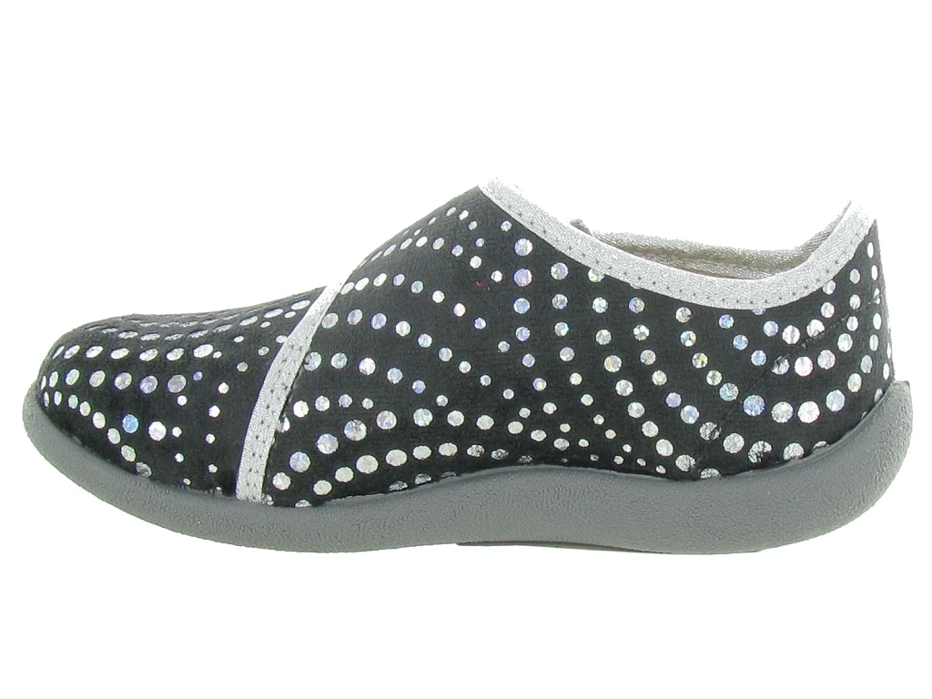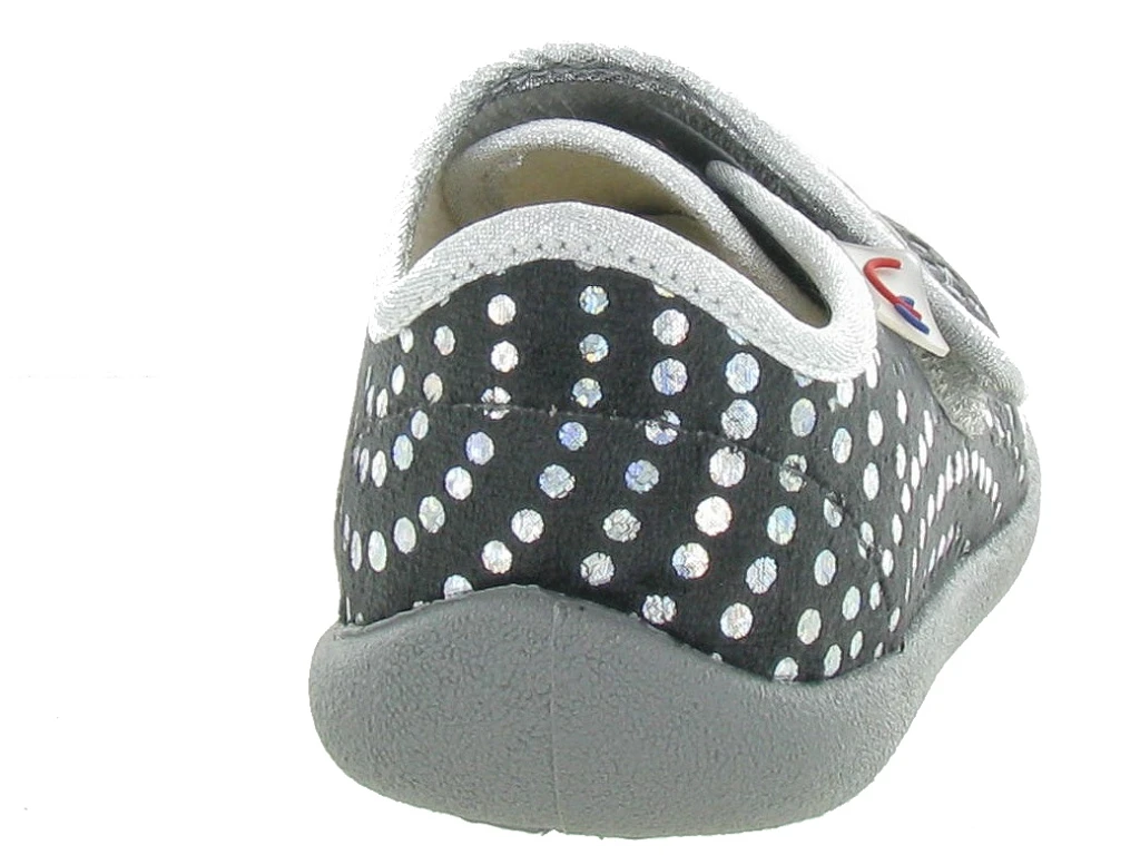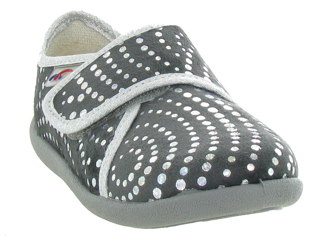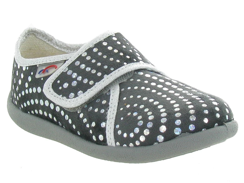 Des petits poids qui brillent, du tissu tout doux, un scratch sur le dessus du chausson : que demandez de plus ? Voici le nouveau chausson BELLAMY VANILLE ! Confortable et tendance, cette paire fera le bonheur de vos fille ! A la maison, à l’école ou chez les copines, elle ne voudra plus les quitter ! On remercie encore une fois la marque française pour la praticité, le confort et la qualité de ce modèle ! Vous aimerez sa semelle antidérapante, son velcro (trop facile à enfiler) et sa couleur grise (passe partout).Choississez une pointure au-dessus de la taille habituelle car les chaussons Bellamy chaussent petits.