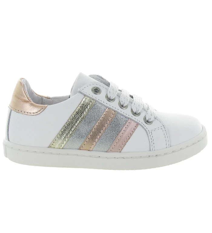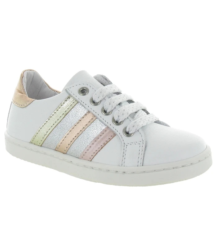 Encore une petite basket pour fille avec des bandes pastel sur le côté pour être bien dans l’actu de cet été. OKAPI de Bellamy est, ici, présentée en cuir blanc. Pour le confort des enfants : contrefort asymétrique, bonne hauteur de tige et double fermetures lacet + zip sur le coté. Facile à porter pour aller l’école ou sortir au parc, les Juniors filles, qui apprécient le confort de la marque française Bellamy, pourront trouver à se chausser. La grille de pointure va du 25 au 34.