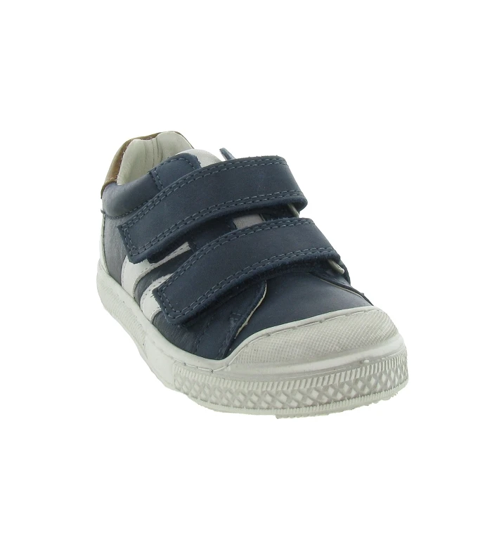 FRED, des baskets basses en cuir lisse Bleu marine pour garçon. Avec ce modèle entre chaussure de ville et basket, BELLAMY nous propose un bon basic décontracté aux couleurs sobres qui vous permettra de le mixer facilement avec toutes les tenues de votre Junior !