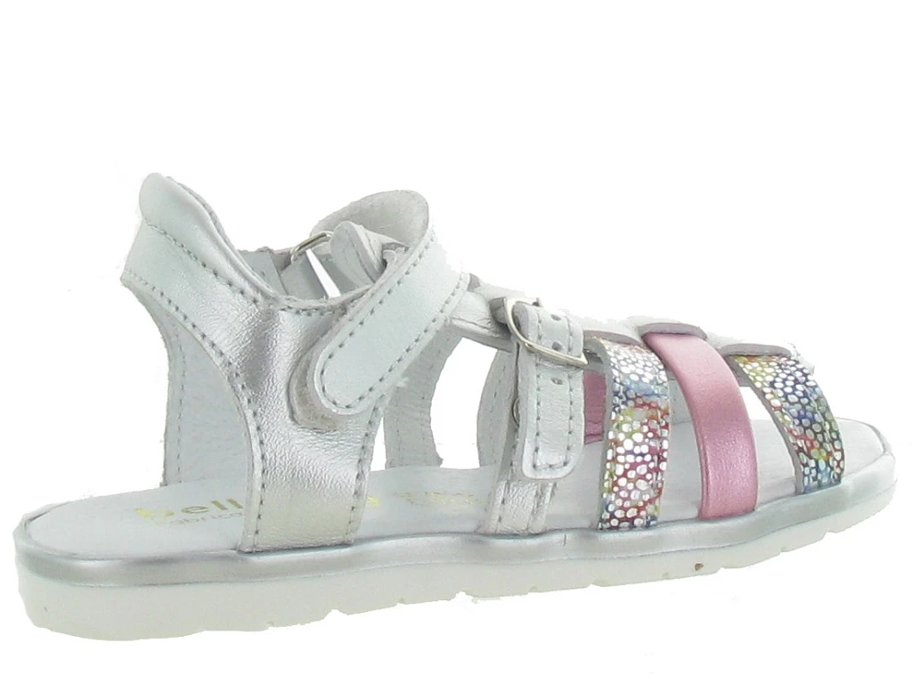 NEW ! Sandales à velcro, BELLAMY, modèle fille, cuir laminé gris argent