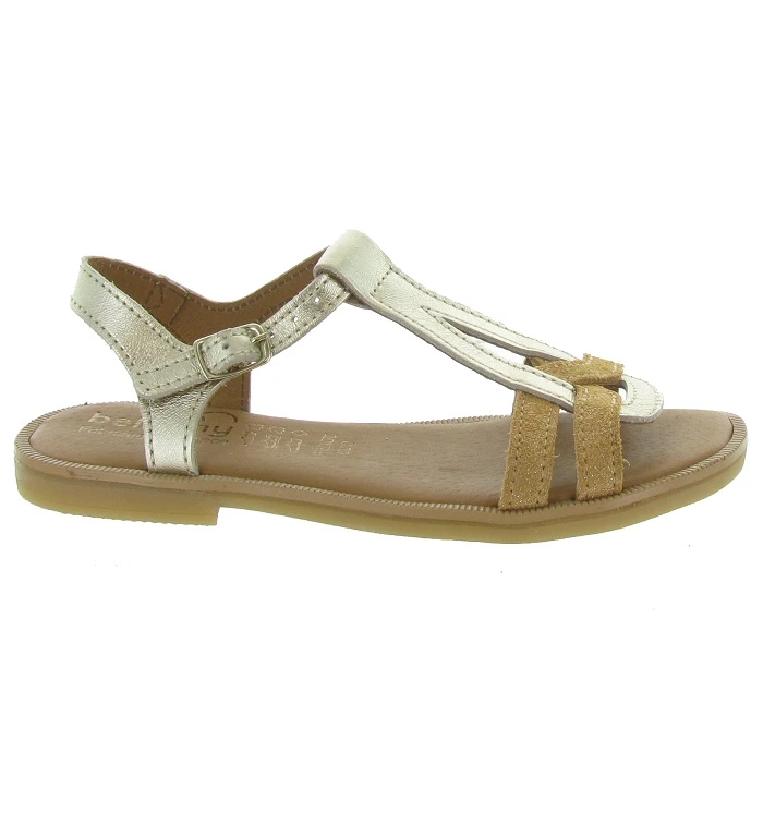 Des coloris qui sentent bon le sable chaud, pour cette sandale Or & Caramel Tilou de Bellamy.